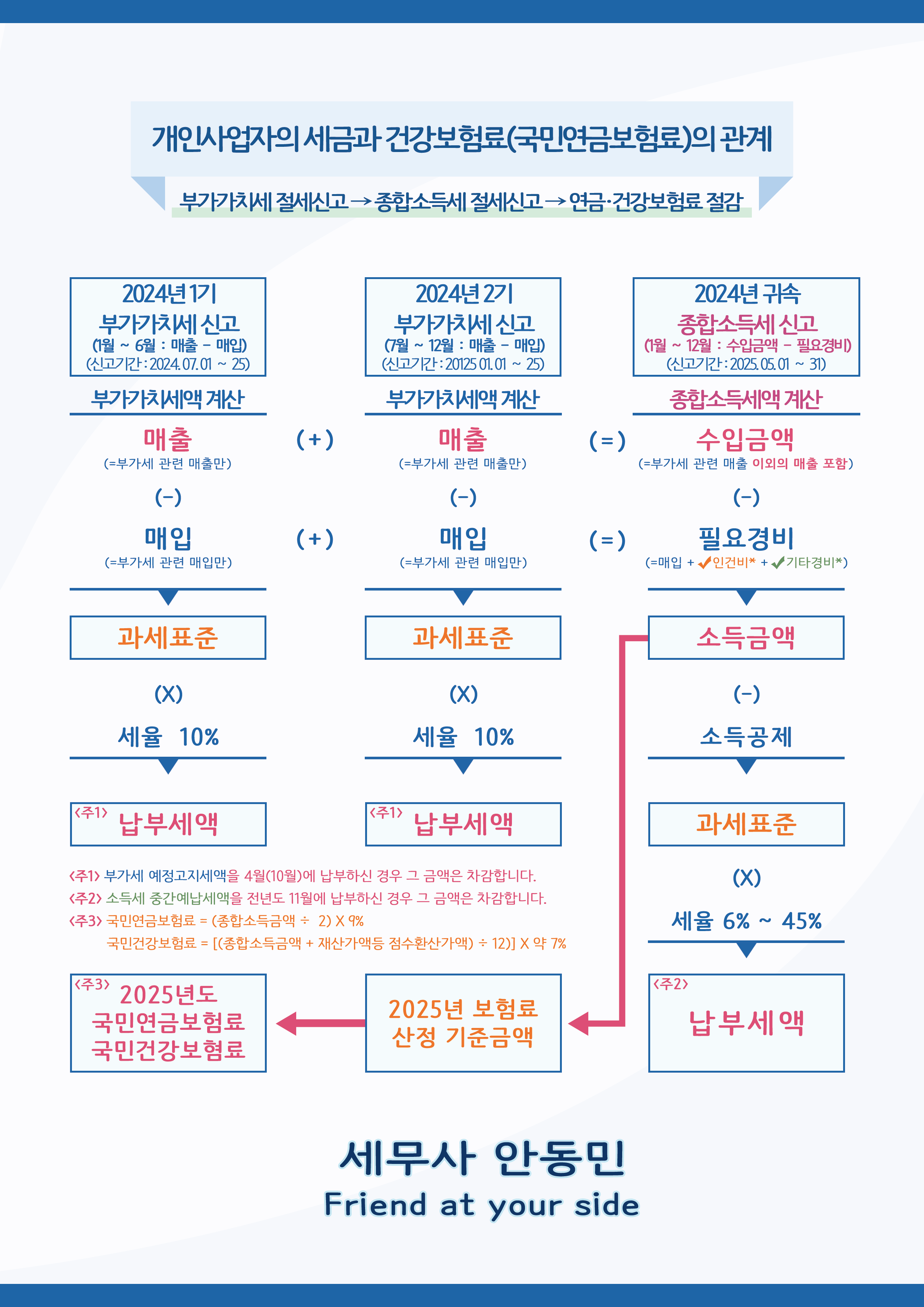 [ 부가가치세 → 종합소득세 → 건강보험료, 국민연금보험료 ]