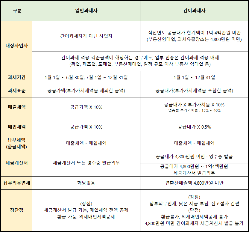 일반과세자와 간이과세자가 다르며