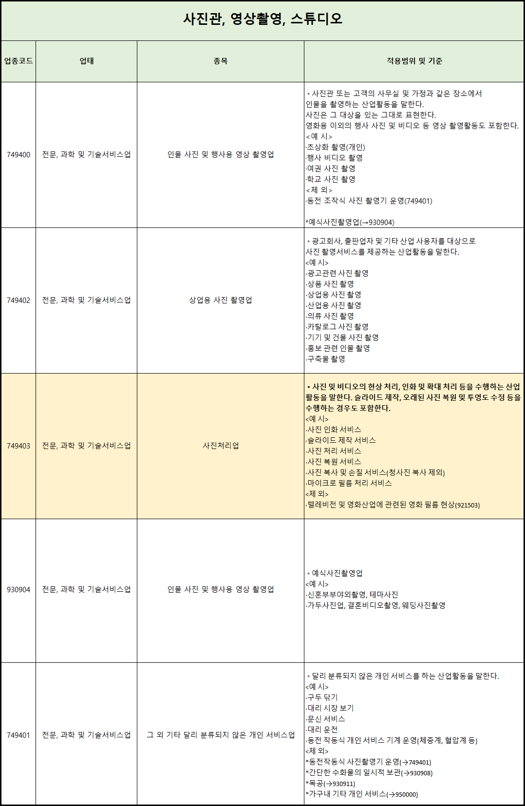 업종 : 전문, 과학 및 기술서비스업/사진처리업