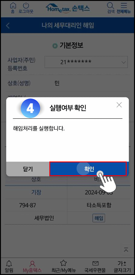 03. 주민등록번호(또는 사업자등록번호) 선택 - 해임 버튼 클릭