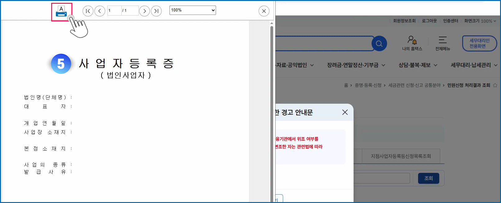 사업자등록증 PDF파일을