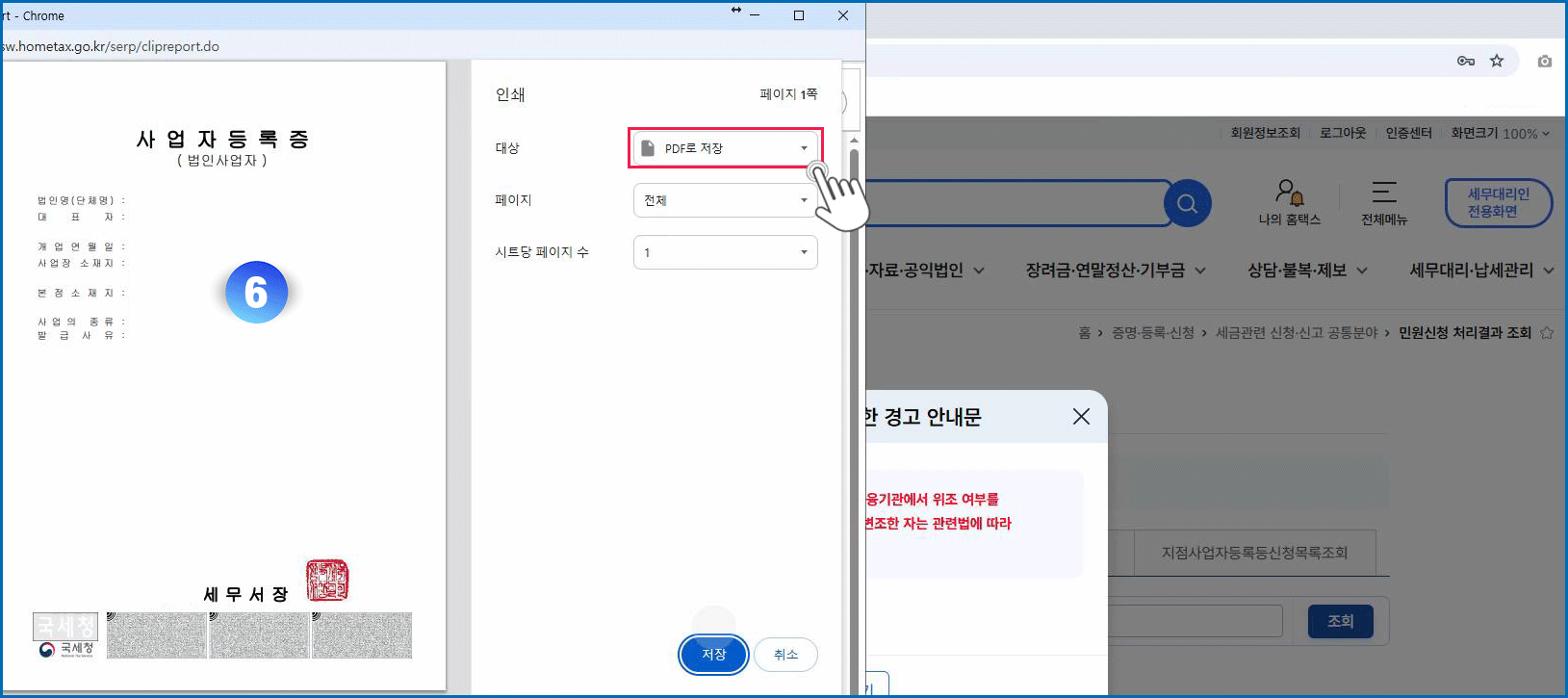 06. PDF로 저장 선택 - 저장 버튼 클릭