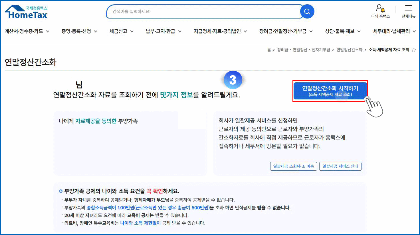 03. 연말정산간소화 시작하기 메뉴 클릭