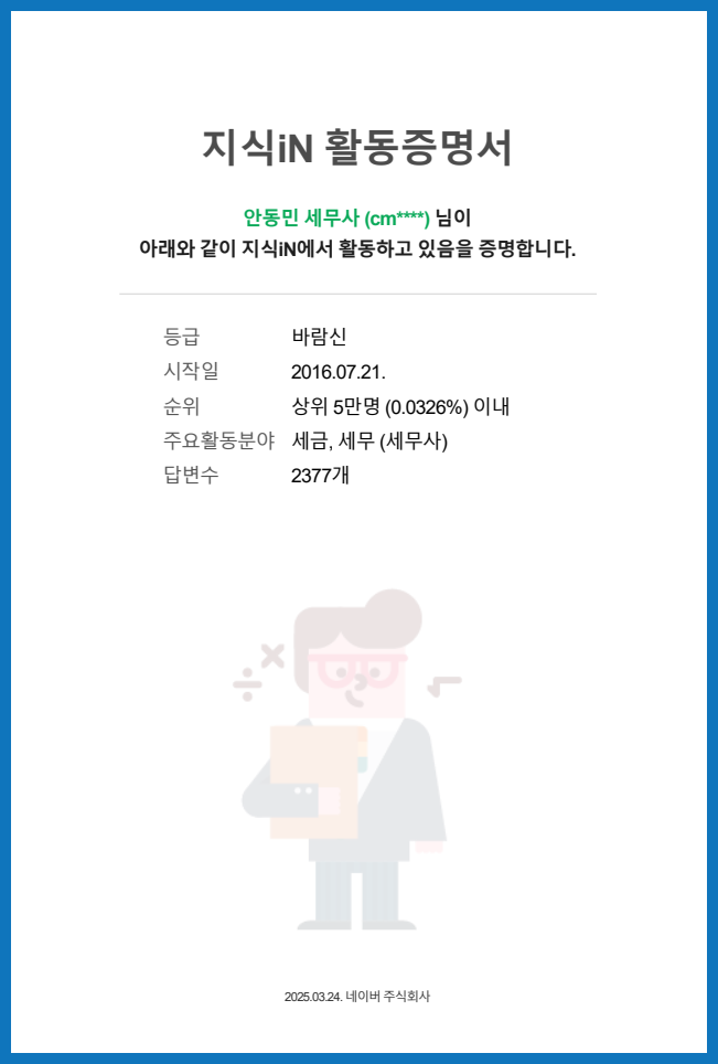 네이버 지식IN 상담 세무사 안동민 입니다.