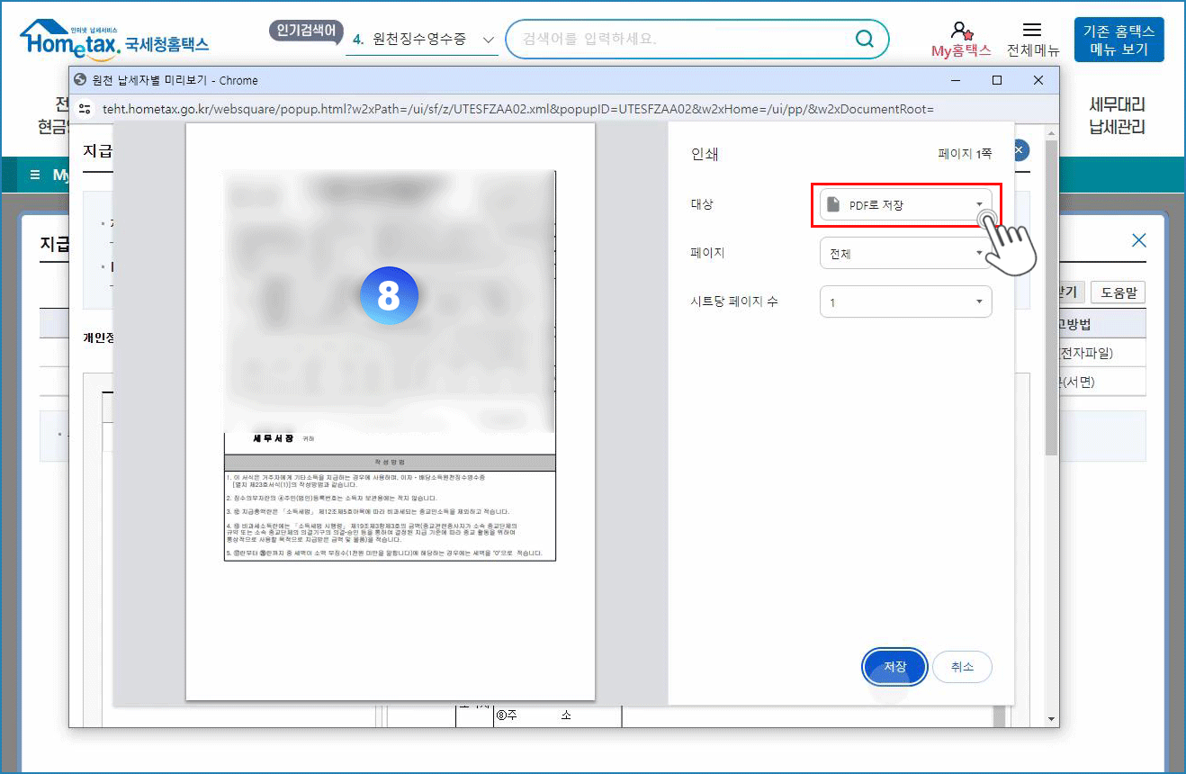08. PDF로 저장 선택 - 저장 버튼 클릭