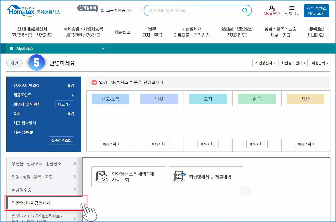 홈택스에 접속하면