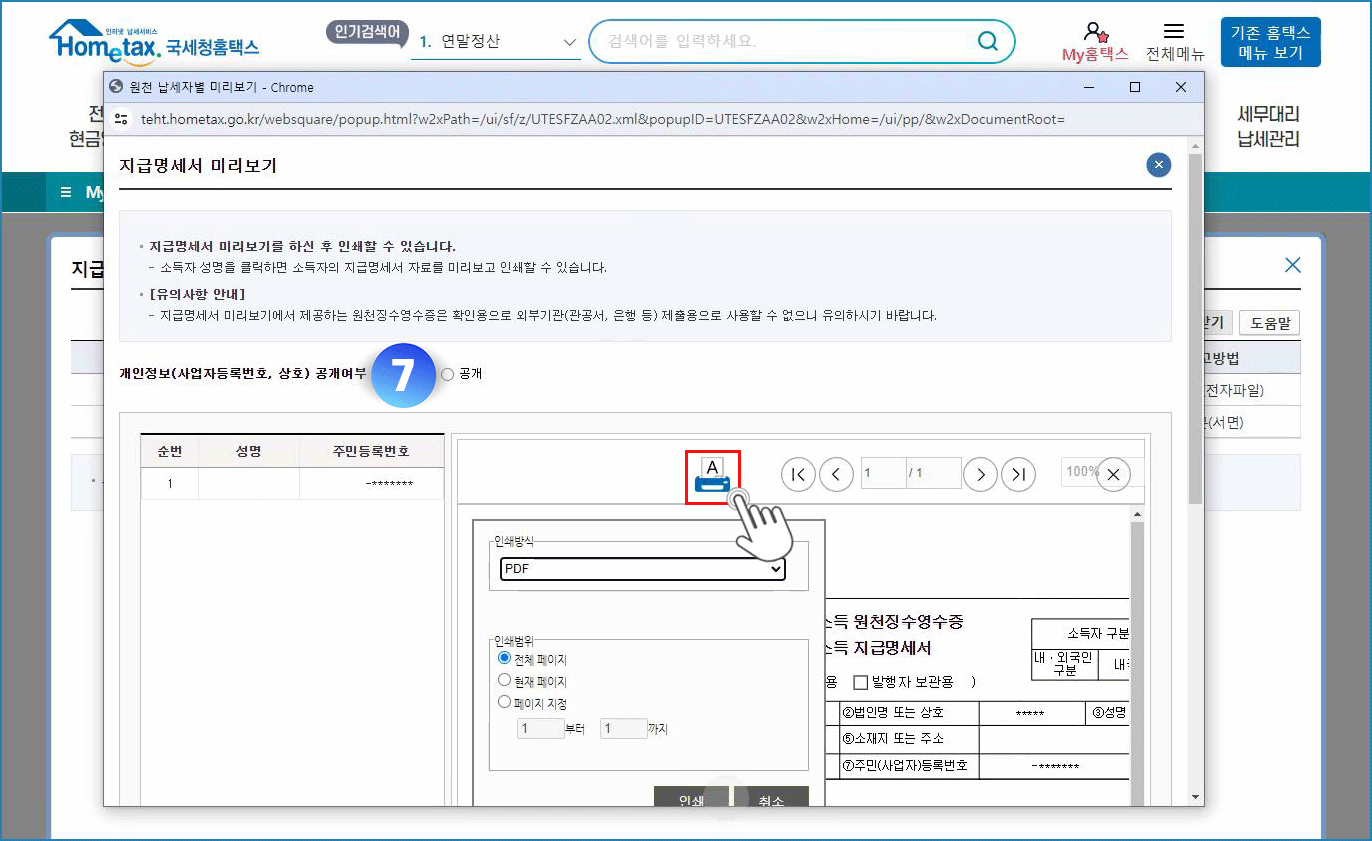 07. A아이콘 클릭 - 인쇄 버튼 클릭