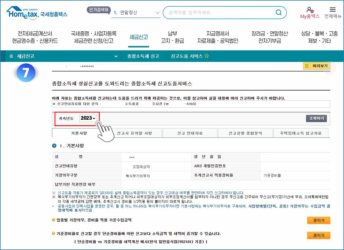 06. 종합소득세 신고도움 서비스 메뉴 클릭