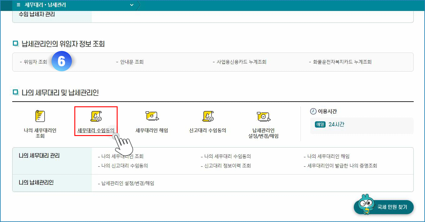 06. 세무대리 수임동의 메뉴 클릭