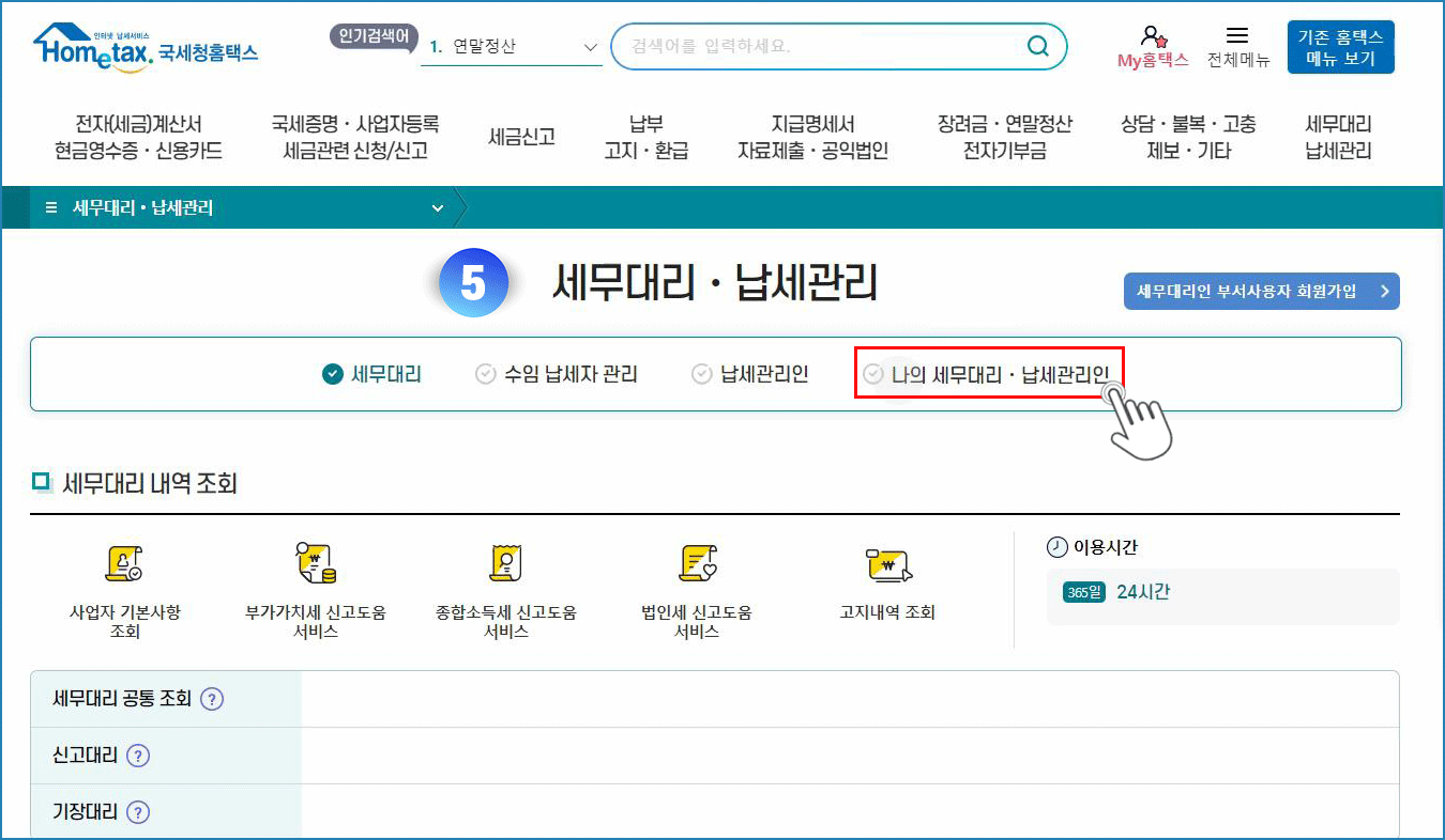 05. 나의세무대리납세관리인 선택