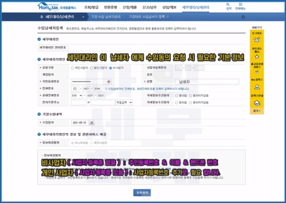 홈택스 수임동의 수락 이란