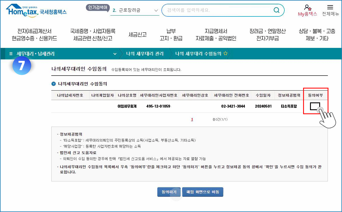 홈택스 수임동의수락 과정