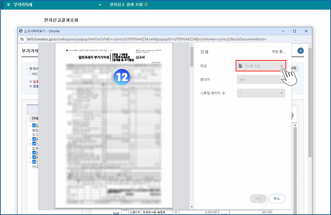 12. PDF로 저장 선택 - 저장 버튼 클릭
