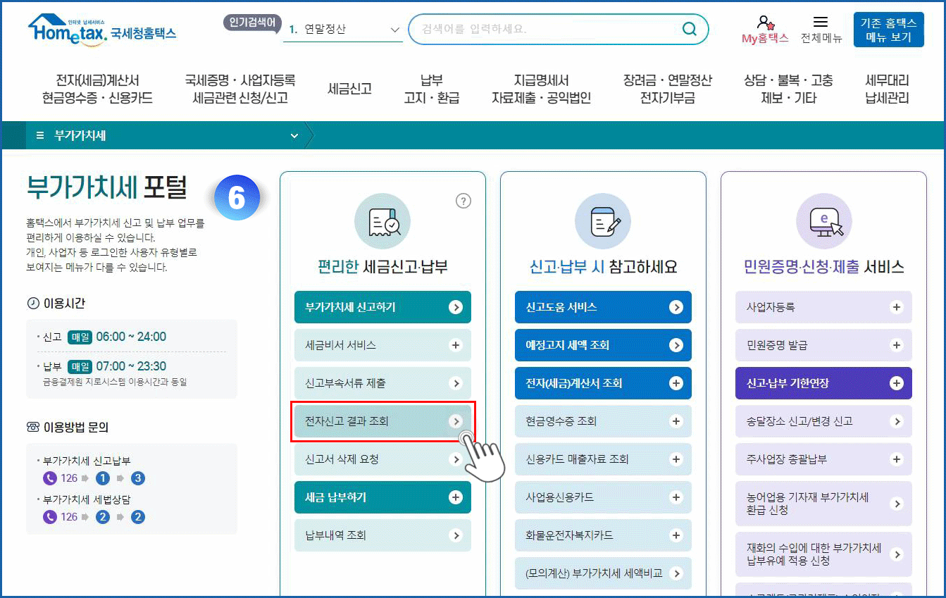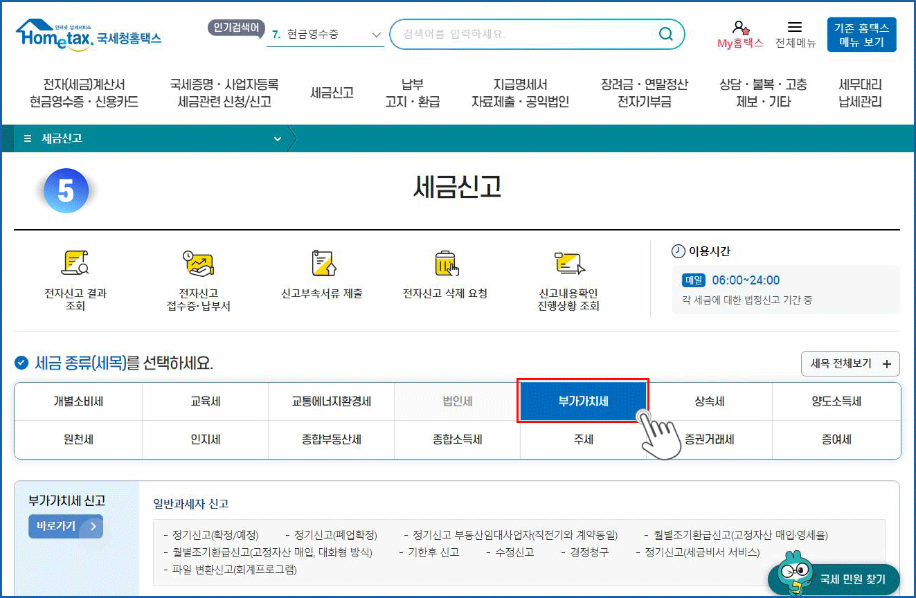 05. 부가가치세 메뉴 클릭 - 부가가치세 신고 바로가기 메뉴 클릭