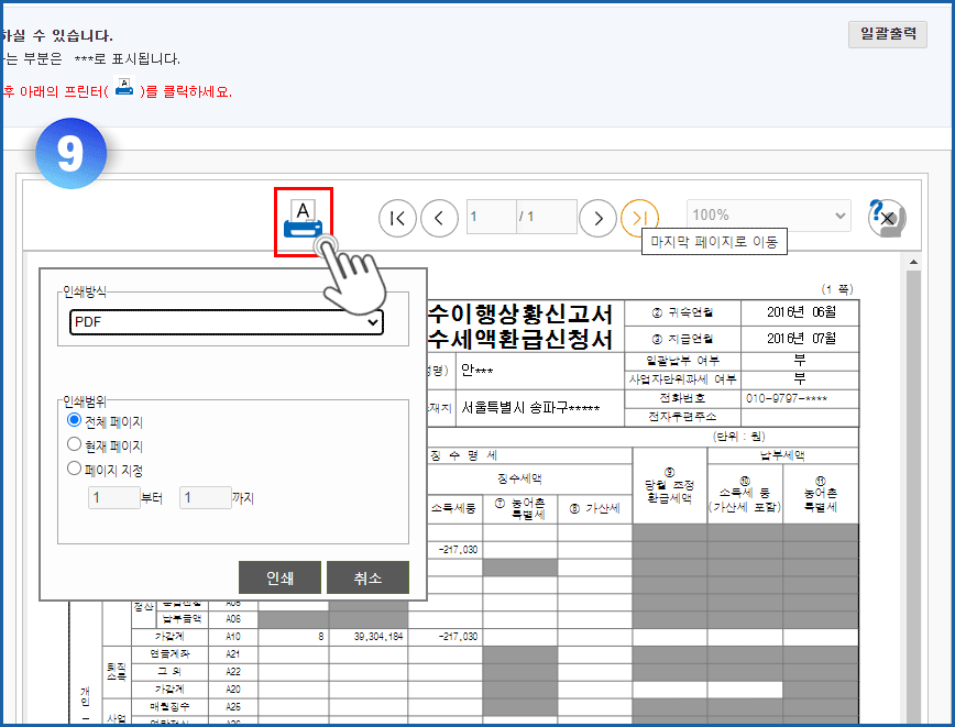 09. A아이콘 클릭 - 인쇄 버튼 클릭