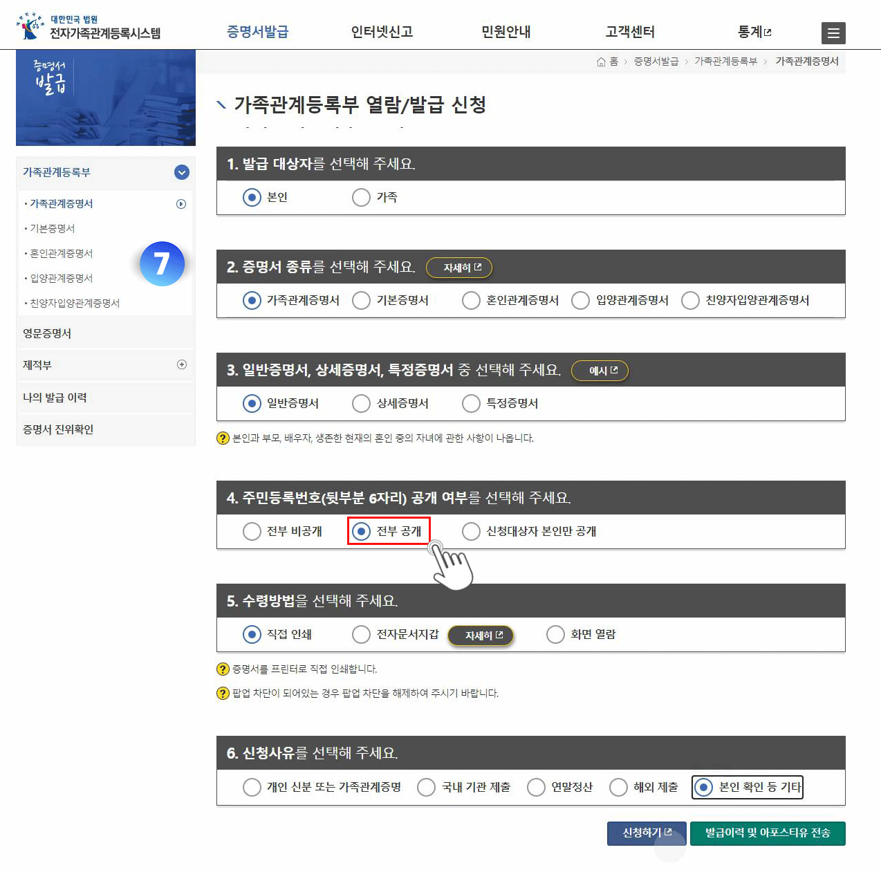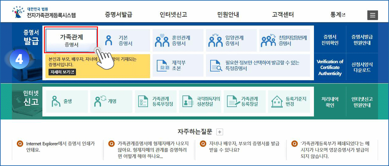 04. 가족관계증명서 메뉴 클릭