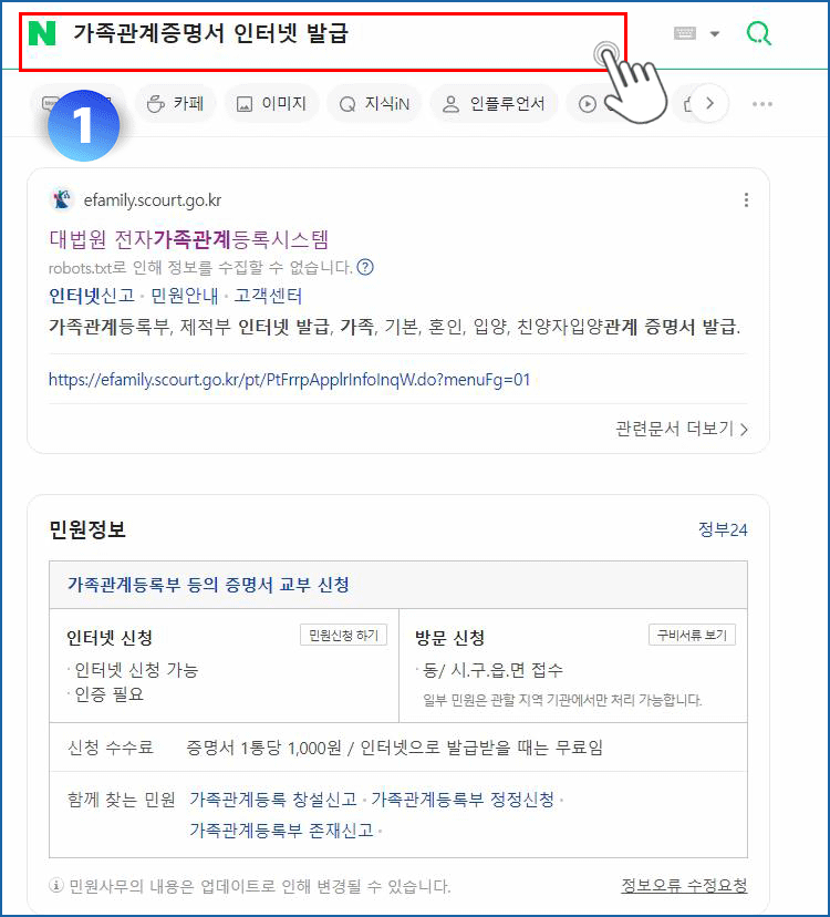 01. 네이버에서 가족관계증명서 인터넷 발급 검색