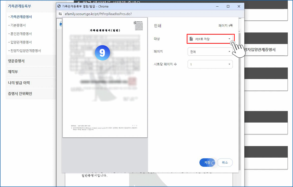 09. PDF로 저장 선택 - 저장 버튼 클릭
